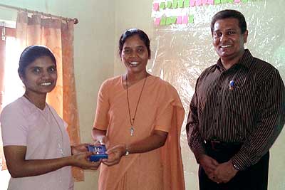 Rev. Fr. Joseph Antony, the Parish Priest of Thirumanthurai blesses the New Garment Unit.
